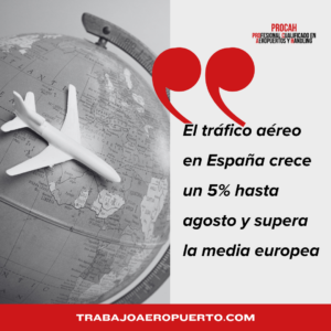 Según datos consolidados de ENAIRE, entre enero y agosto de 2025 el tráfico aéreo en España creció un 5,01% respecto al mismo periodo de 2024 y un 13,5% en comparación con 2019, antes de la pandemia. Esta evolución contrasta con la media europea, donde el aumento frente a 2024 fue solo del 3,7% y todavía se mantiene un 0,7% por debajo de los niveles prepandemia.