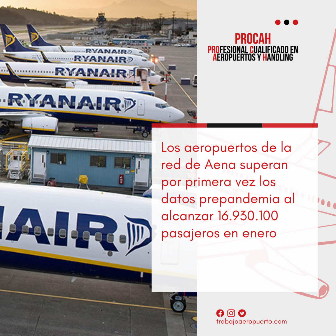 Los aeropuertos de la red de Aena superan por primera vez los datos prepandemia al alcanzar 16.930.100 pasajeros en enero