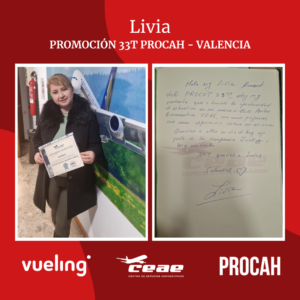 Enhorabuena a Livia, alumna de la promoción 33T de Valencia, por conseguir un puesto de trabajo en el aeropuerto
